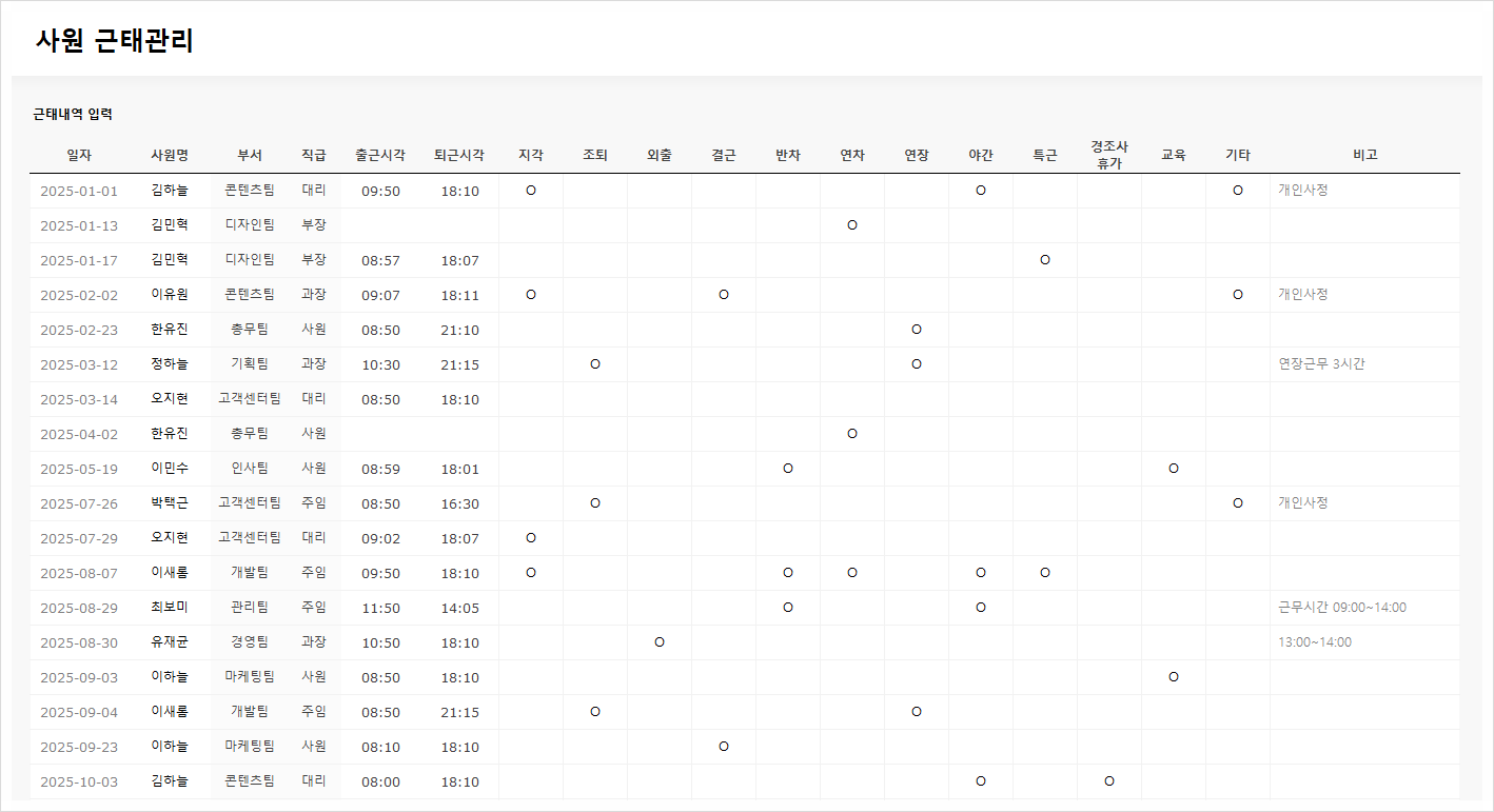 사원 근태관리 템플릿 - 예스폼 엑셀서식