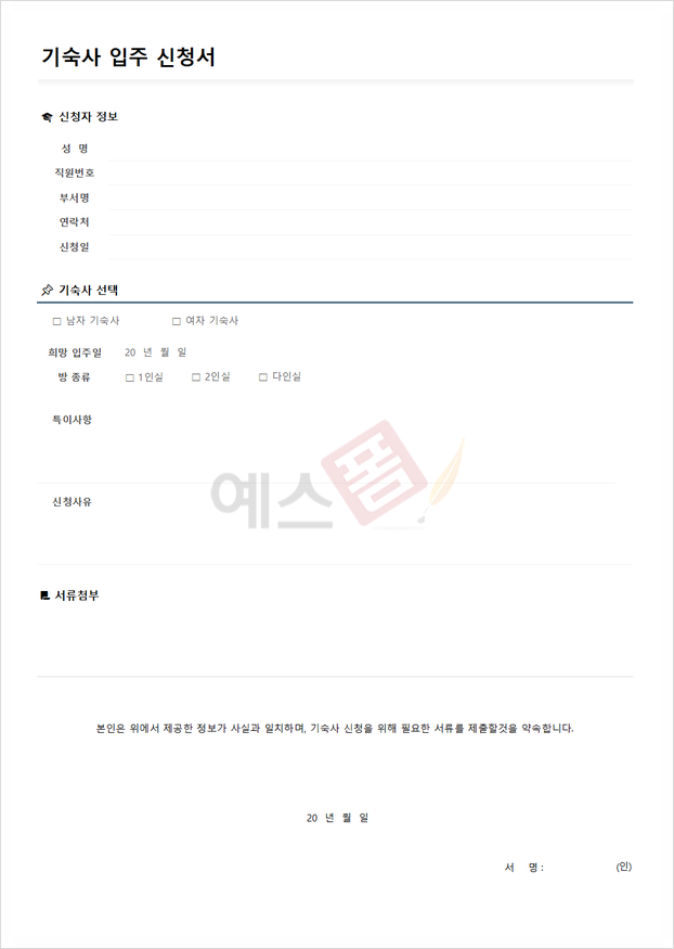 | 복지기금 신청서 | 기숙사 입주 신청서 | 육아 근로시간단축 신청서 |