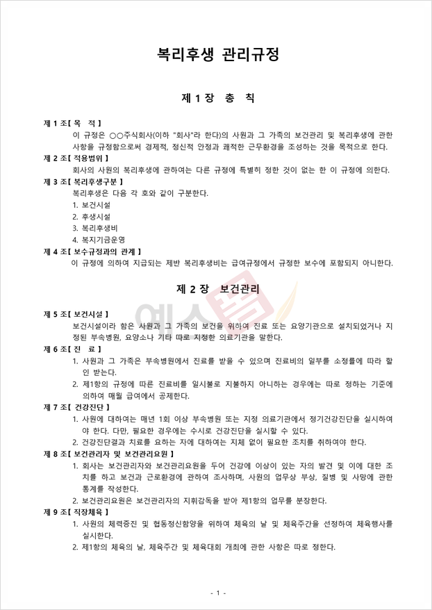 | 복무규정 | 복리후생 관리규정 | 퇴직금 지급규정 |