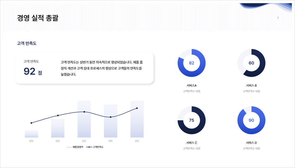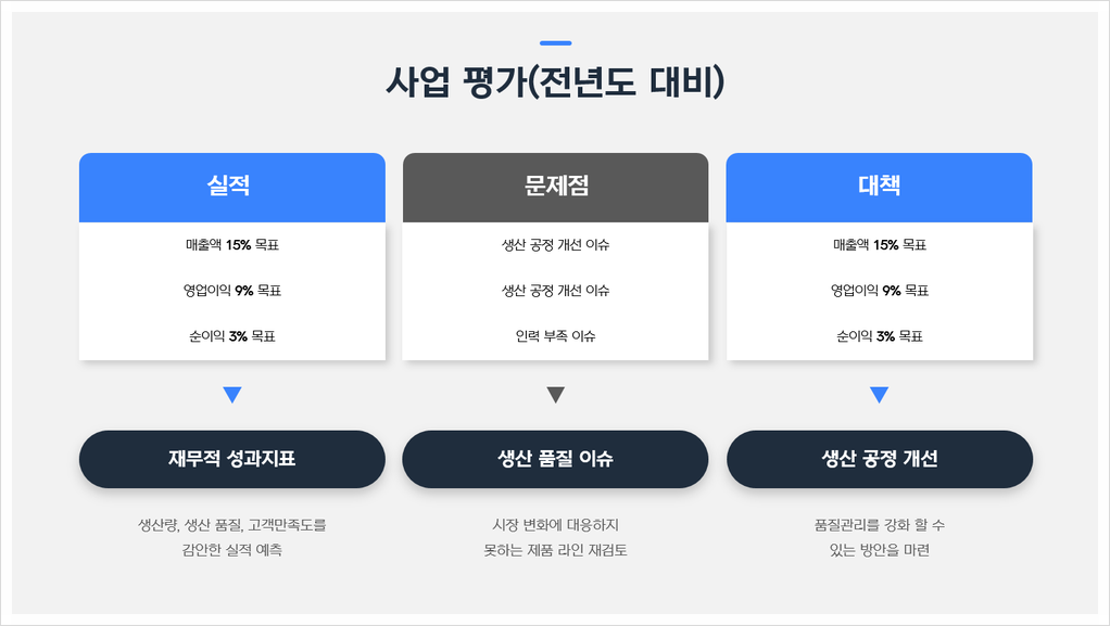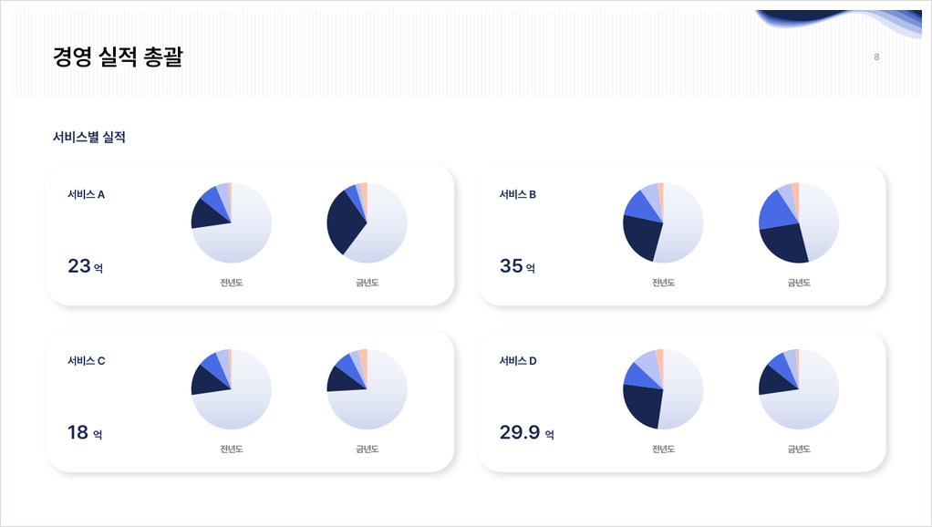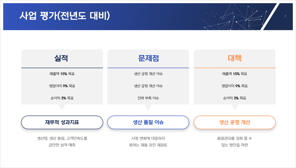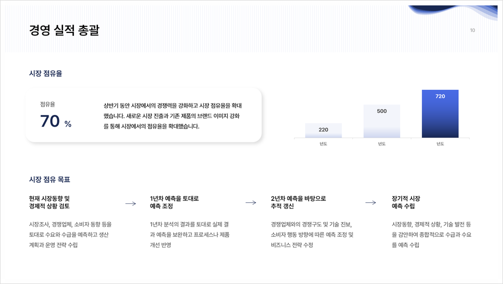✔️ 매출, 이익, 시장 점유율 등 주요 지표 성과 분석