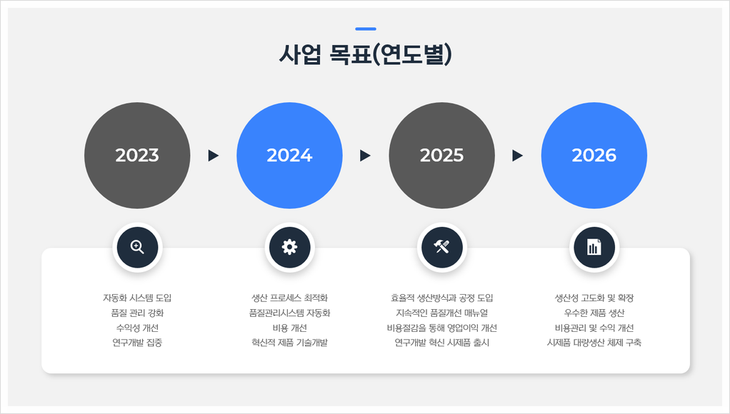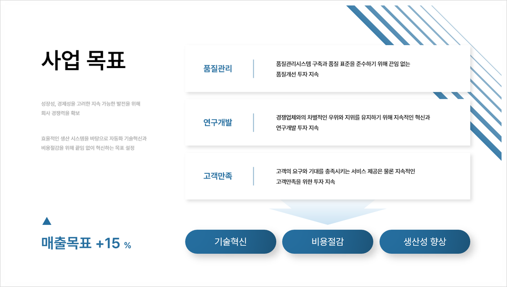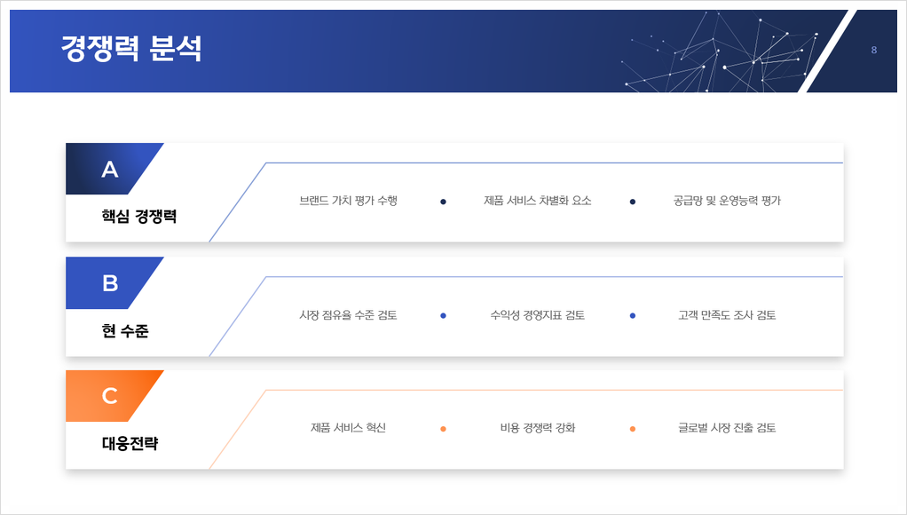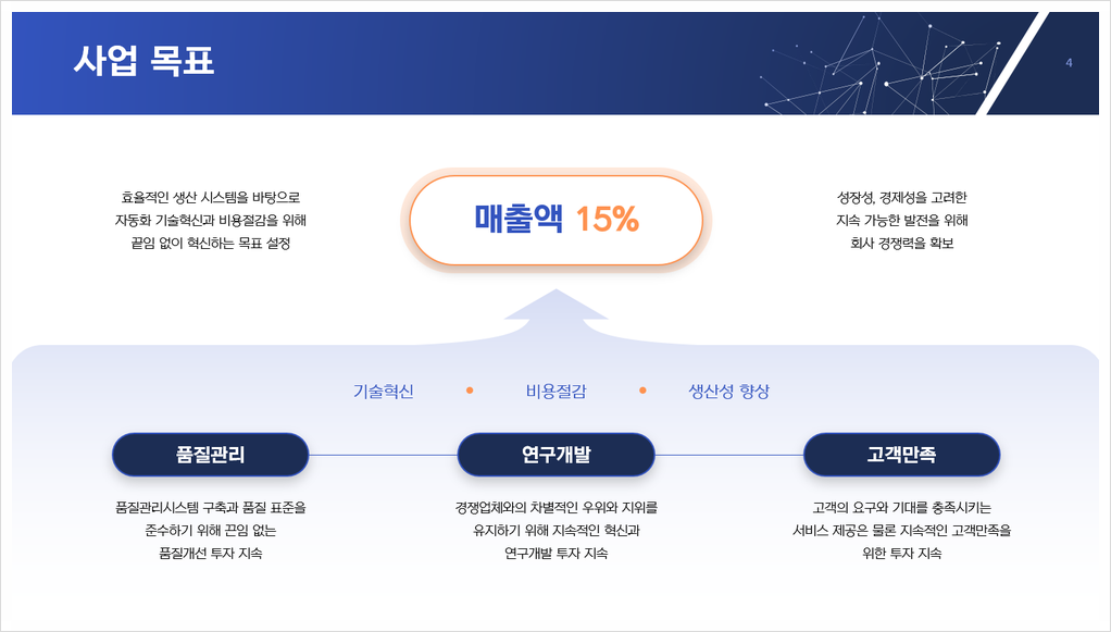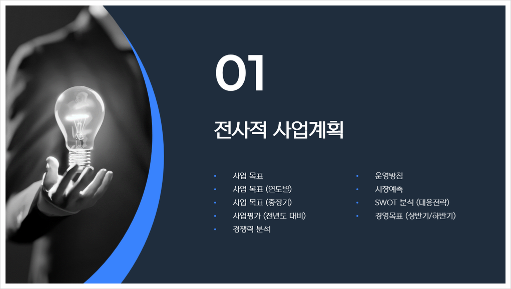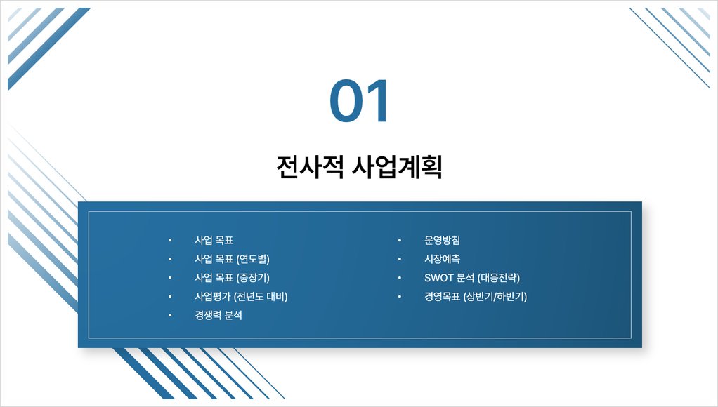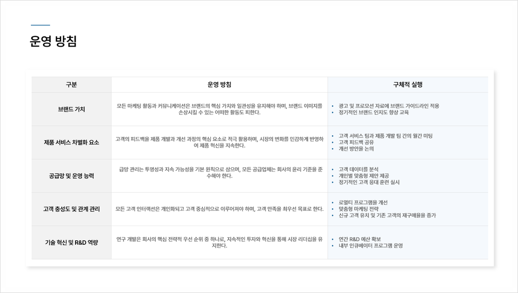 * Ex) 마케팅 전략, 운영 효율화 방안, 서비스 개선 계획