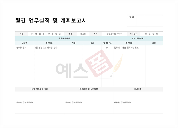 월간 업무실적 및 계획보고서 |