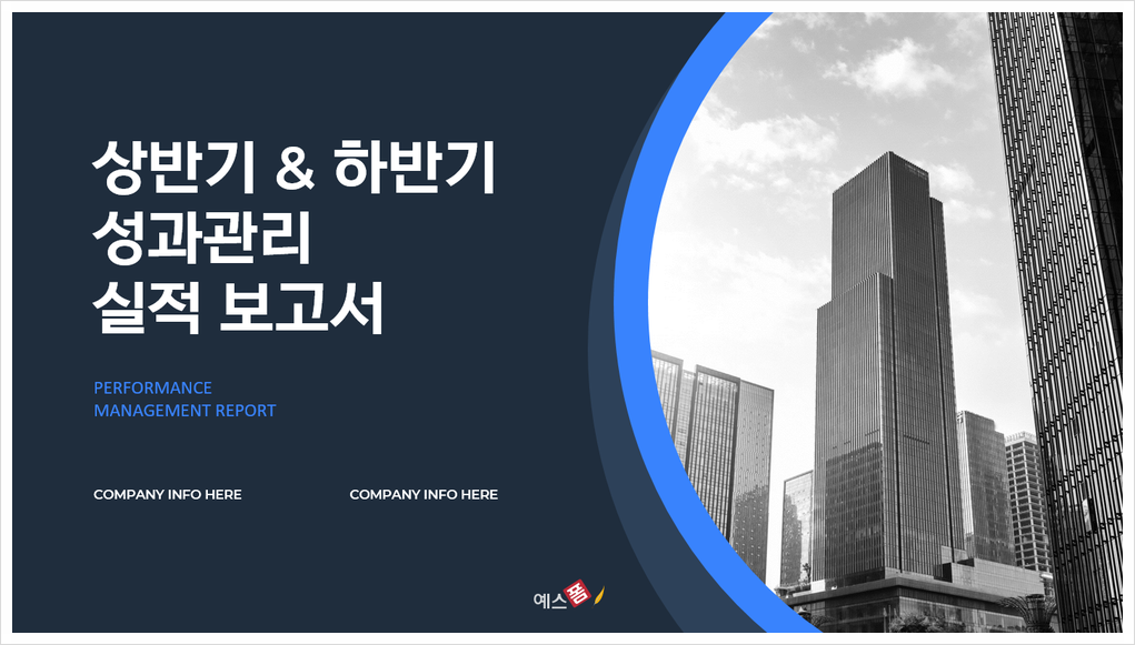 오늘 소개드린 상반기 실적보고서 PPT 양식뿐만 아니라 다양한 실적보고서 양식을 예스폼에서 엑셀, 워드, PPT 템플릿으로 제공 중인데요. 월간, 반기, 연간 등 다양한 시즌 및 상황에 알맞은 실적보고서 샘플, 예시 또한 포함되어 있으니 상반기 실적보고서 작성이 어려우시다면 참고해 보시는 걸 추천드려요!