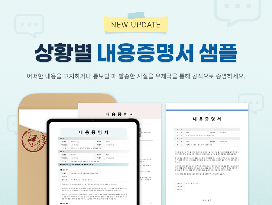 내용증명서는 증거의 보전, 채권·채무의 이행, 권리·의무의 변경 등을 이유로 상대방과 어떠한 분쟁이 생겼을 때, 상대방에게 어떠한 내용을 보냈다는 증명력을 갖는 문서입니다. 내용증명서가 공신력을 갖게 하려면 우체국을 통해 증명력을 확보해야 하는데요.