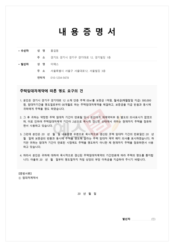 | 내용증명서 (주택 임대차 명도) | 내용증명 (임대차 계약에 따른 명도 요구) | 내용증명 (명도 소송에 대한 답변) |