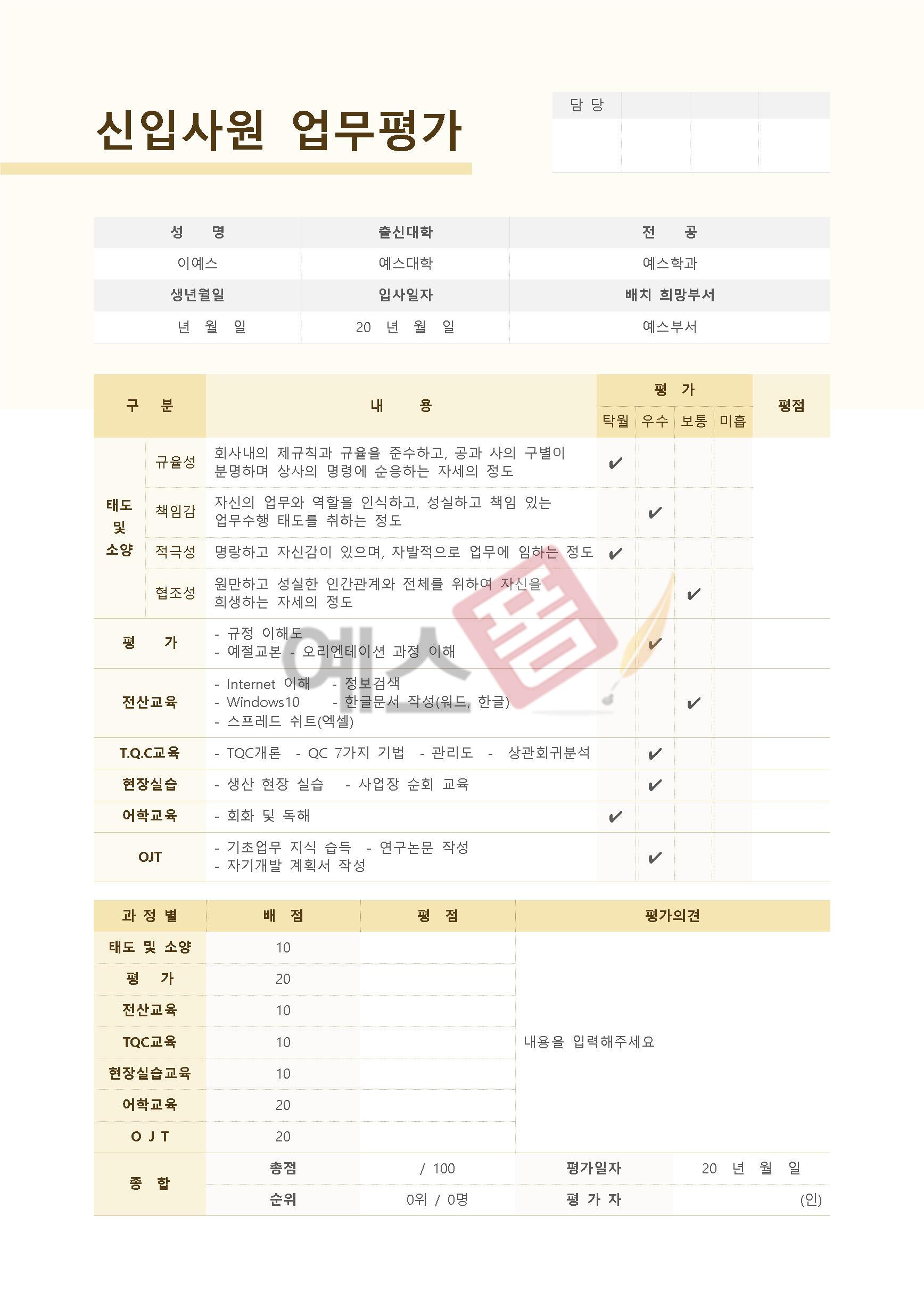 업무평가표 | 업무능력 평가서 | 신입사원 업무평가 |