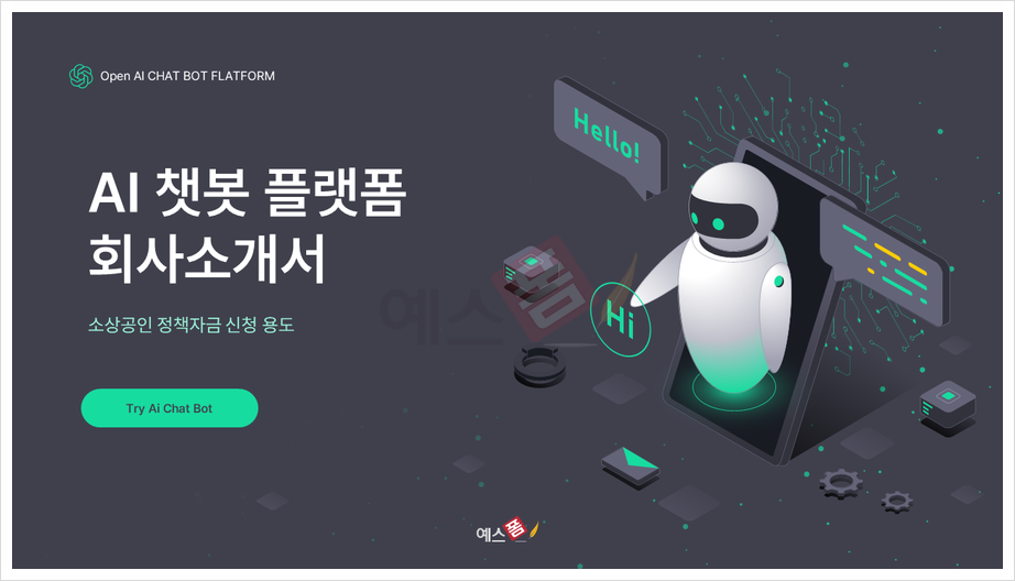 오늘은 예스폼에서 AI 챗봇 플랫폼을 운영하는 업체가 소상공인 정책자금을 신청하기 위해 작성한 회사소개서 예시를 준비해보았습니다. 우리 회사가 어떤 사업을 영위하고 있는지, 사업 목표와 전략, 그리고 자금계획은 어떠한지 설명하여 자금을 유치하는 내용인데요. 비슷한 업종이 아니시더라도 전체적인 회사소개의 흐름을 참고하시어 우리 업체에 맞는 회사소개서를 작성해보시기 바랍니다!