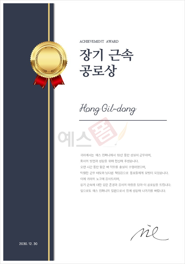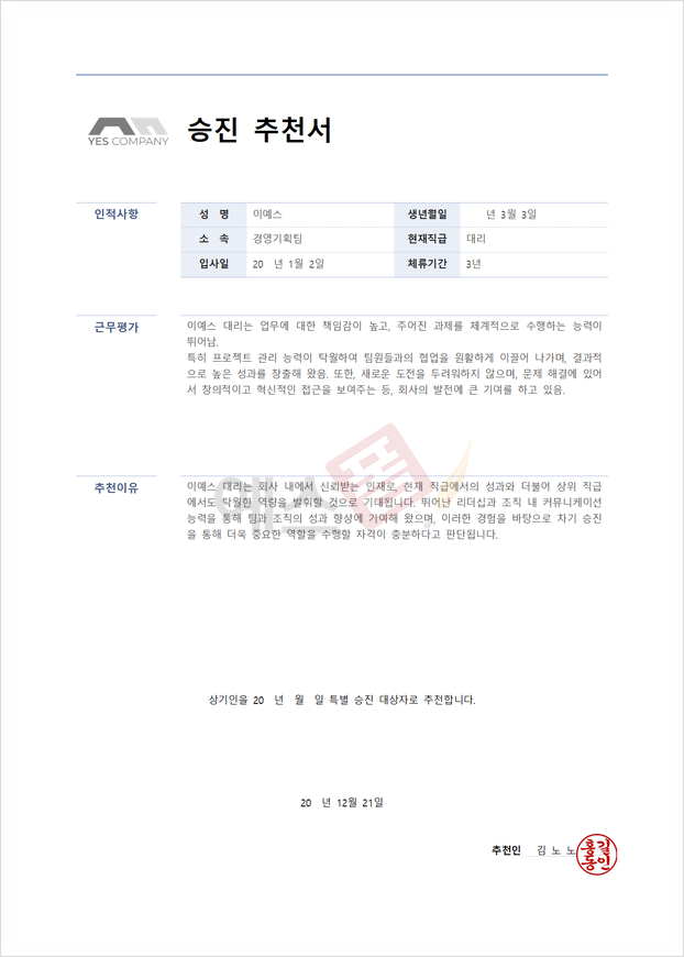 | 장기 근속공로상 | 연말 승진 추천서 | 승진 공고문 |