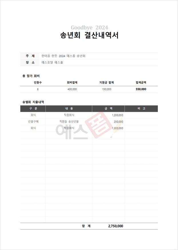 | 송년회 결산내역서 | 송년회 화장실 안내문 | 송년회 참석자 명단 |