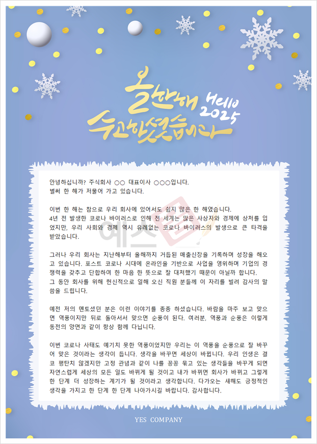 ✅ 예스폼 [송년사] 종무식 인사말 (코로나로 인한 단합)