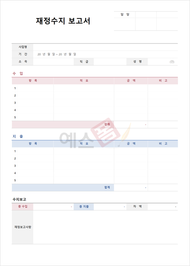오늘은 회사, 단체, 프로젝트의 재정 상태를 한눈에 보여주는 재무분석을 위한 문서이자 수입과 지출을 파악하고, 이를 바탕으로 재무 상태를 관리할 수 있는 수지보고서에 대해 알아보려 하는데요. 수지보고서의 중요성, 활용방법과 이번 예스폼에서 새롭게 제작된 수지보고서양식 4종을 소개드리겠습니다.
