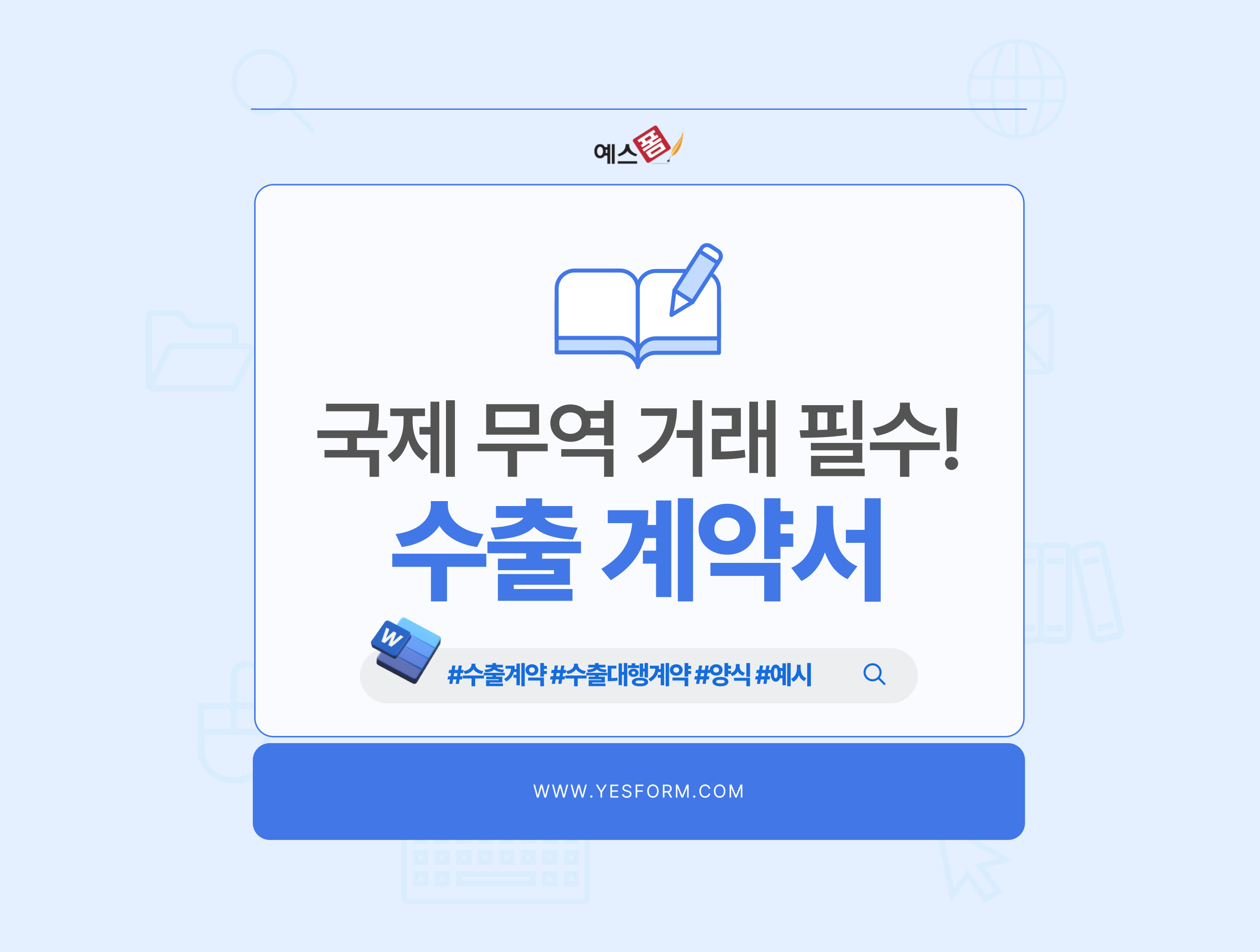 오늘 소개드린 양식 외 다양한 상황에 대한 예시가 작성되어 있는 수출 계약서양식, 수출대행 계약서양식을 예스폼에서 제공 중이니 관련 계약서양식을 찾으신다면 참고해 보시기 바랍니다.