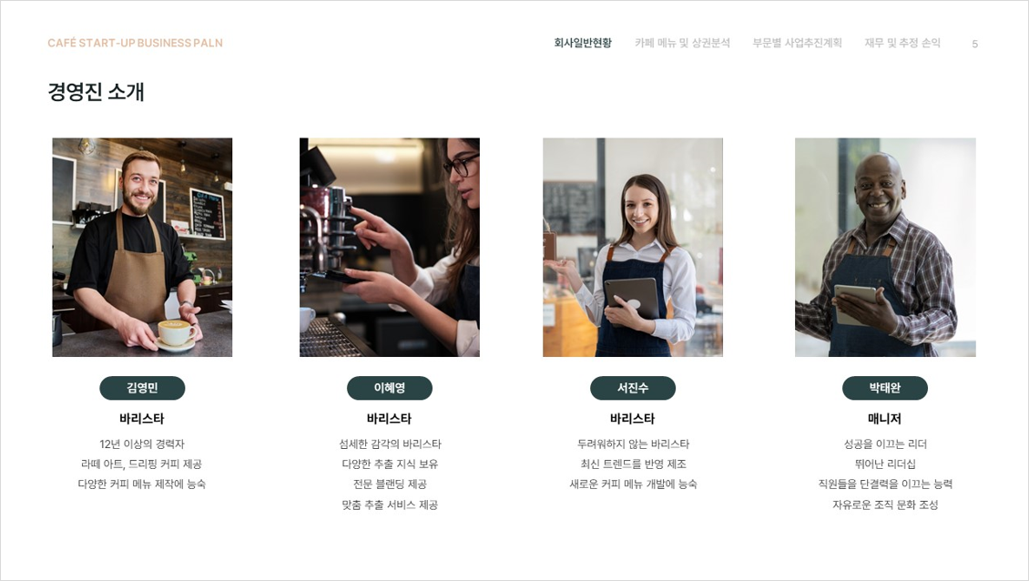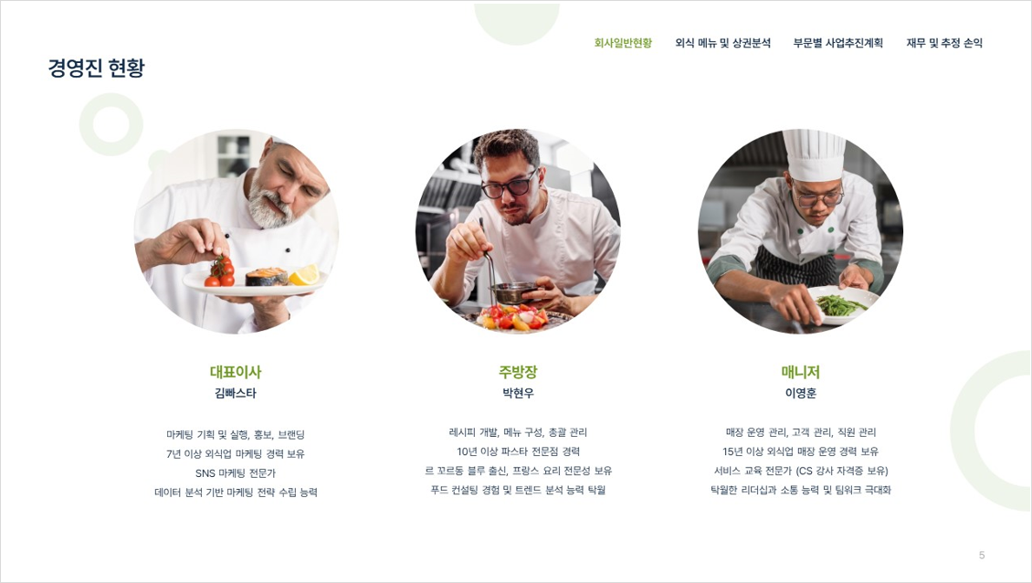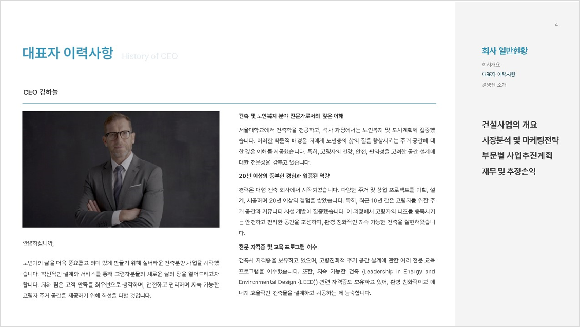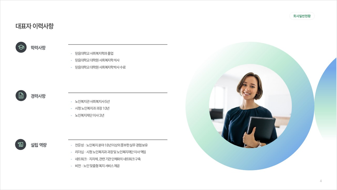 ✔️ 회사 소개, 주요 제품 및 서비스, 경영진 소개, 핵심 역량, 재무 상태