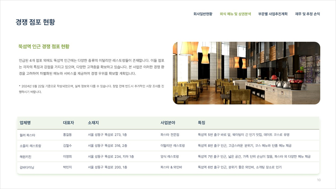 이탈리안 레스토랑 창업 사업계획서(피자 파스타 전문점)