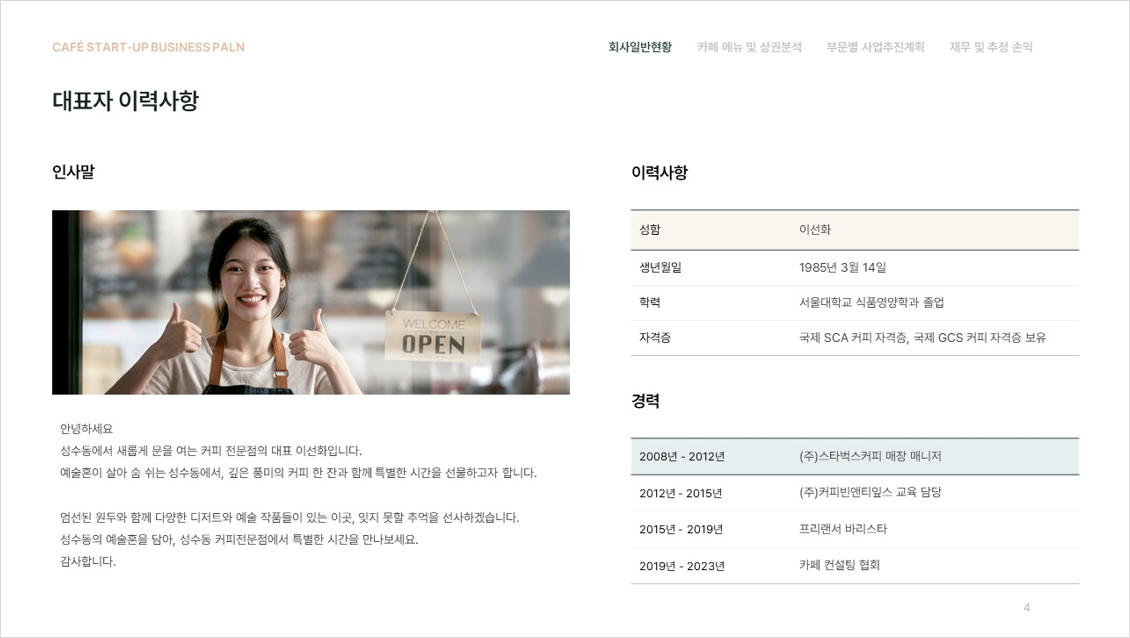 카페 & 커피전문점 창업 사업계획서 (커피머신 도소매)