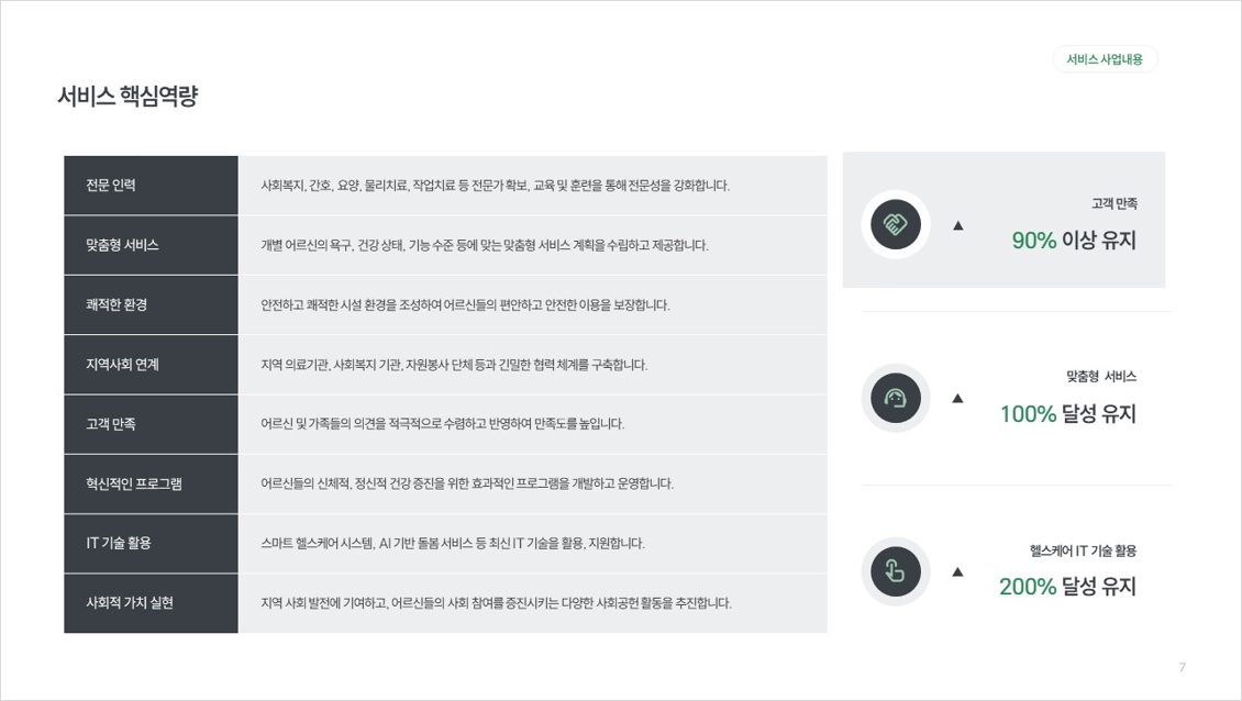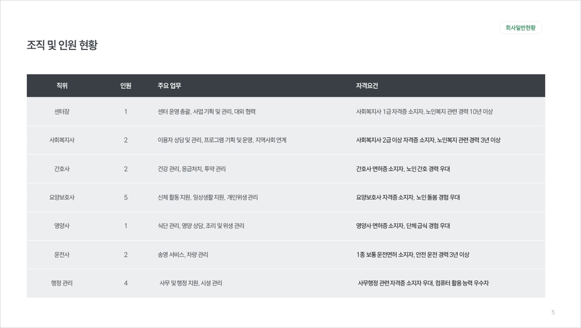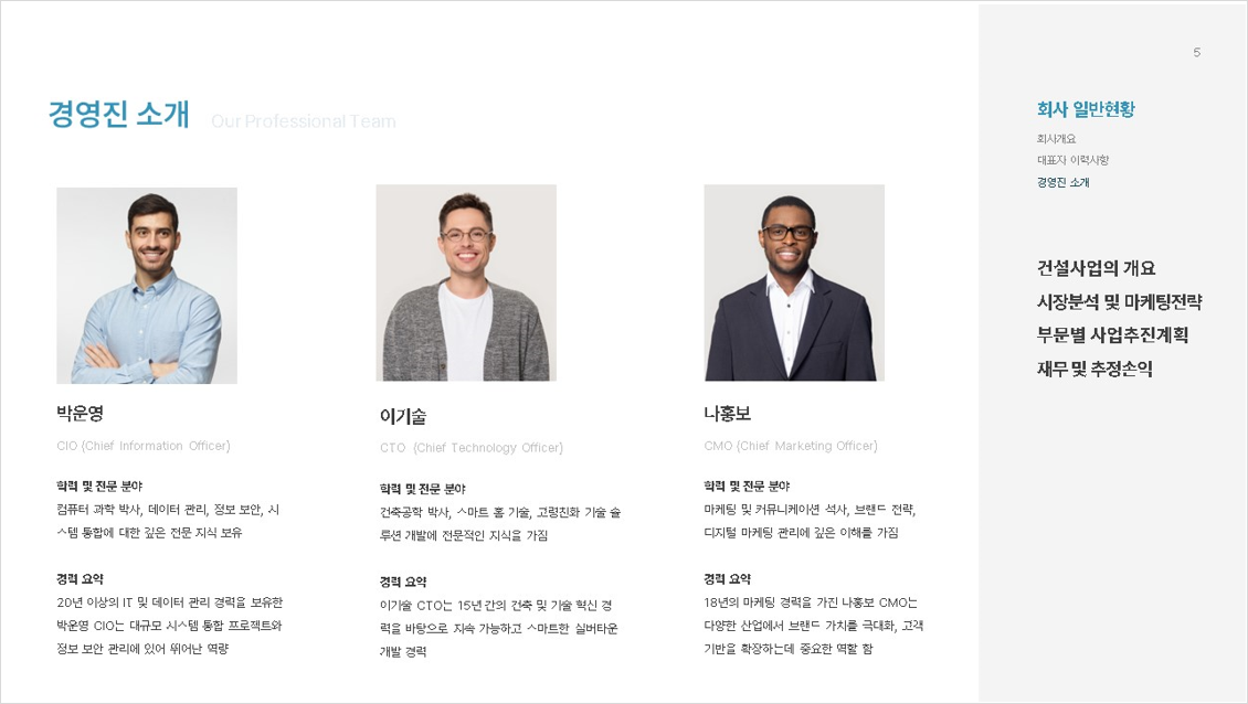 ✔️ 회사 소개, 주요 제품 및 서비스, 경영진 소개, 핵심 역량, 재무 상태