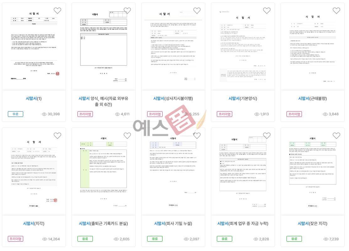✅ 예스폼에서 제공하는 시말서 양식 종류