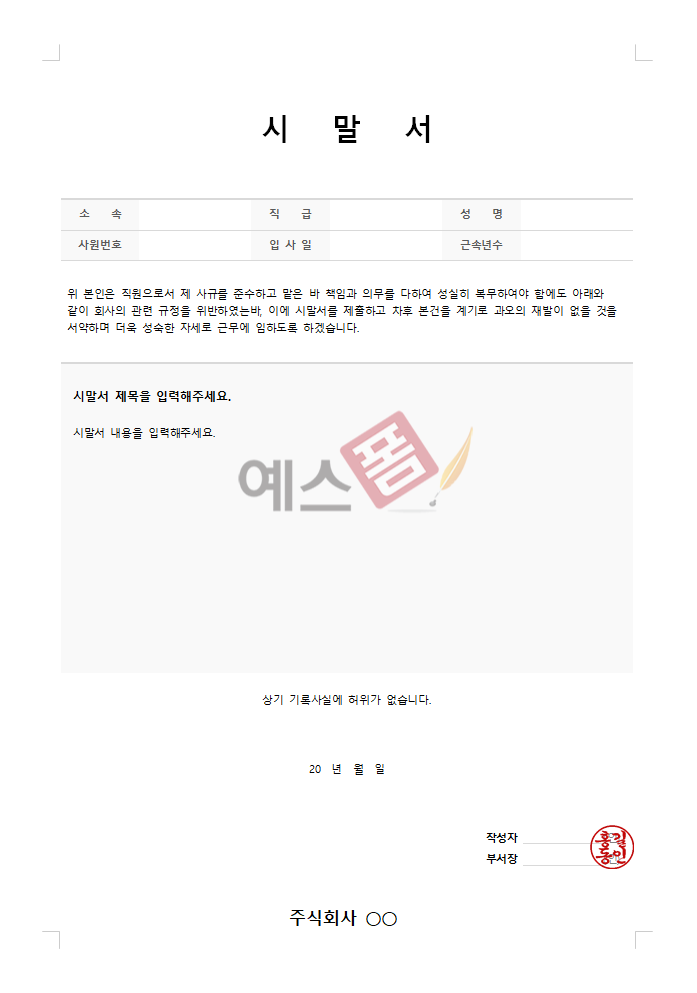 👉 예스폼 시말서 양식 보러가기