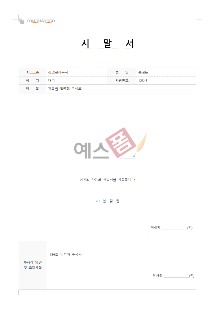 오늘은 직장생활 중 꼭 알아두어야 할 시말서의 정의부터, 작성방법과 주의사항, 그리고 실무에 유용한 예스폼의 시말서 양식까지 소개해드렸습니다. 조직 내 신뢰를 지키고, 재발 방지를 위한 첫걸음은 바로 책임 있는 문서 작성입니다.