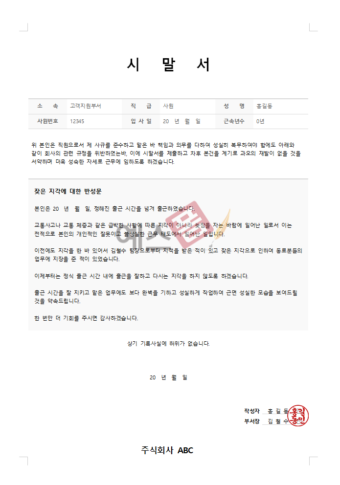 👇🏻 시말서(지각) 다운로드 👇🏻