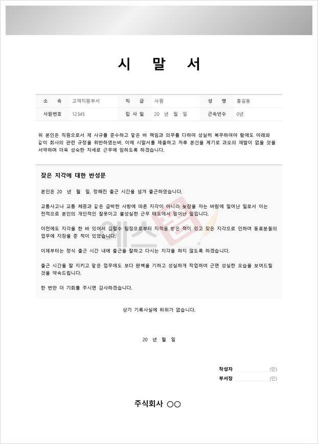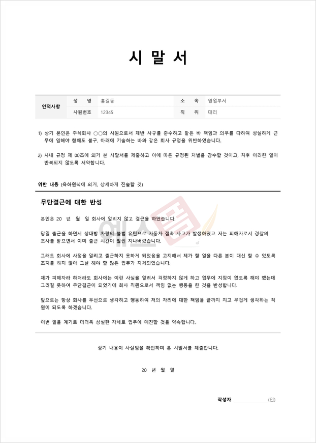 시말서 작성가이드
