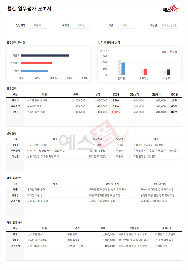 월간 업무평가 보고서
