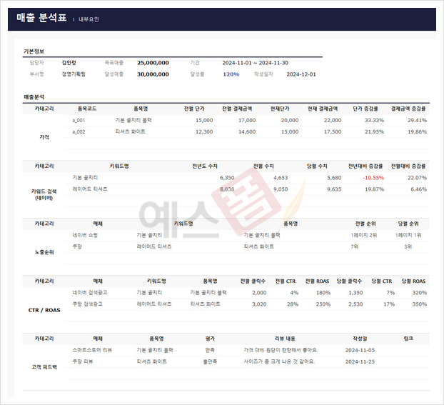 매출 분석표 (매출 분석 및 성장전략)