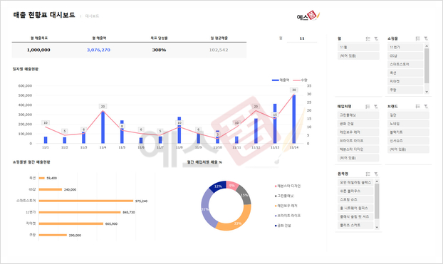 매출 현황 표 대시보드