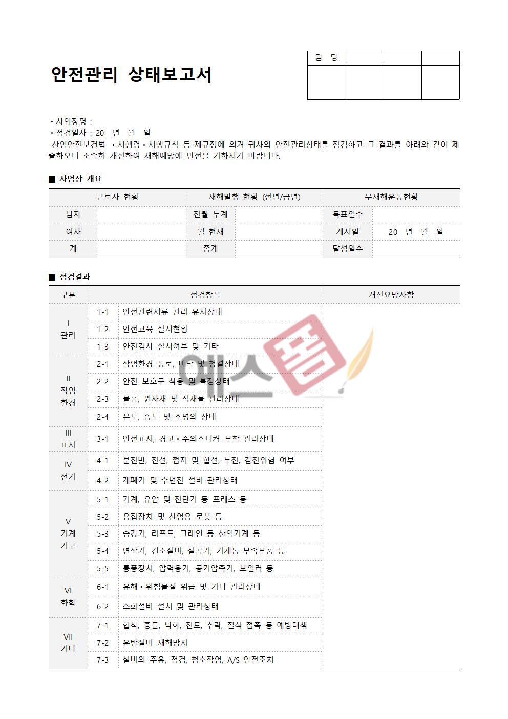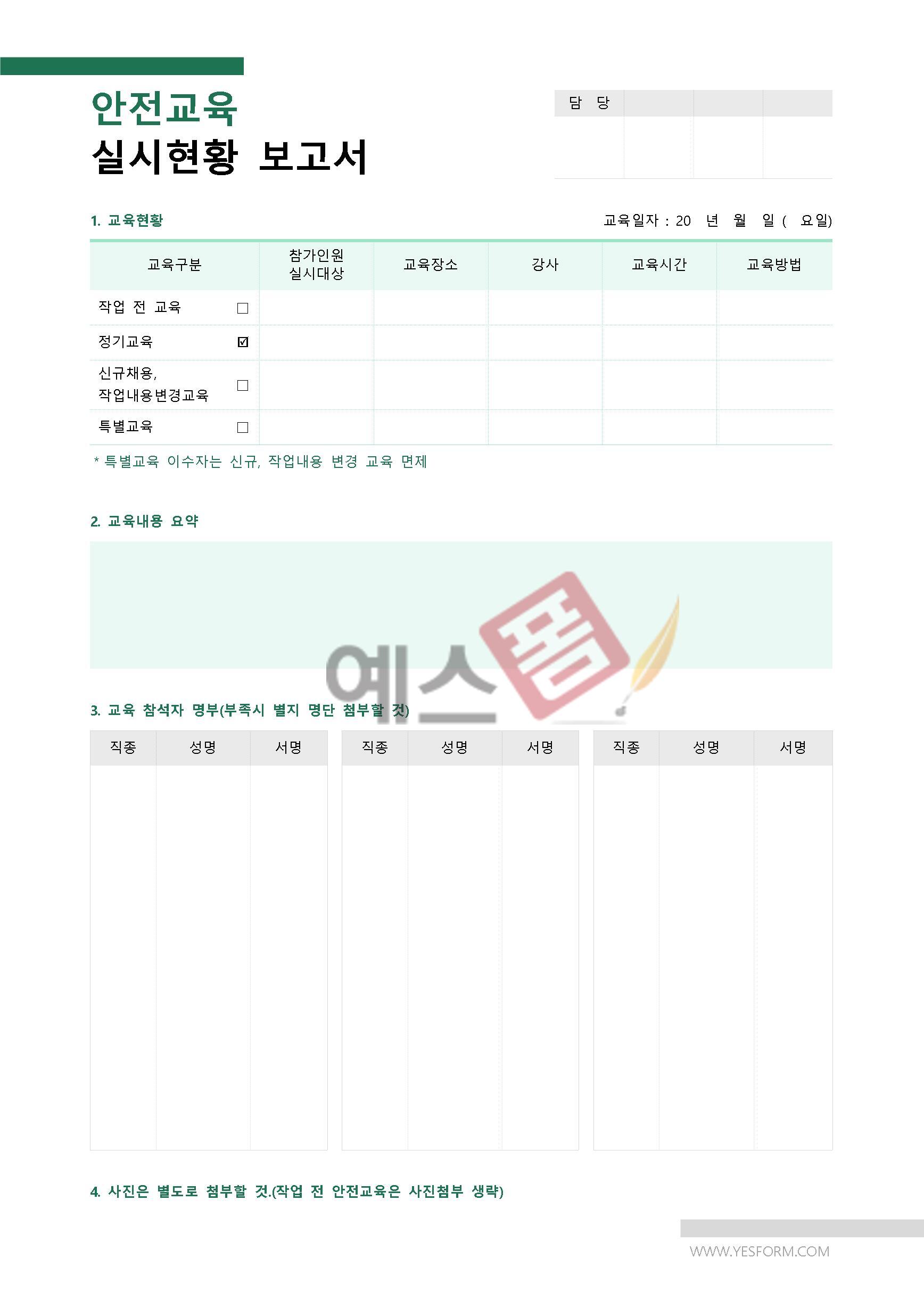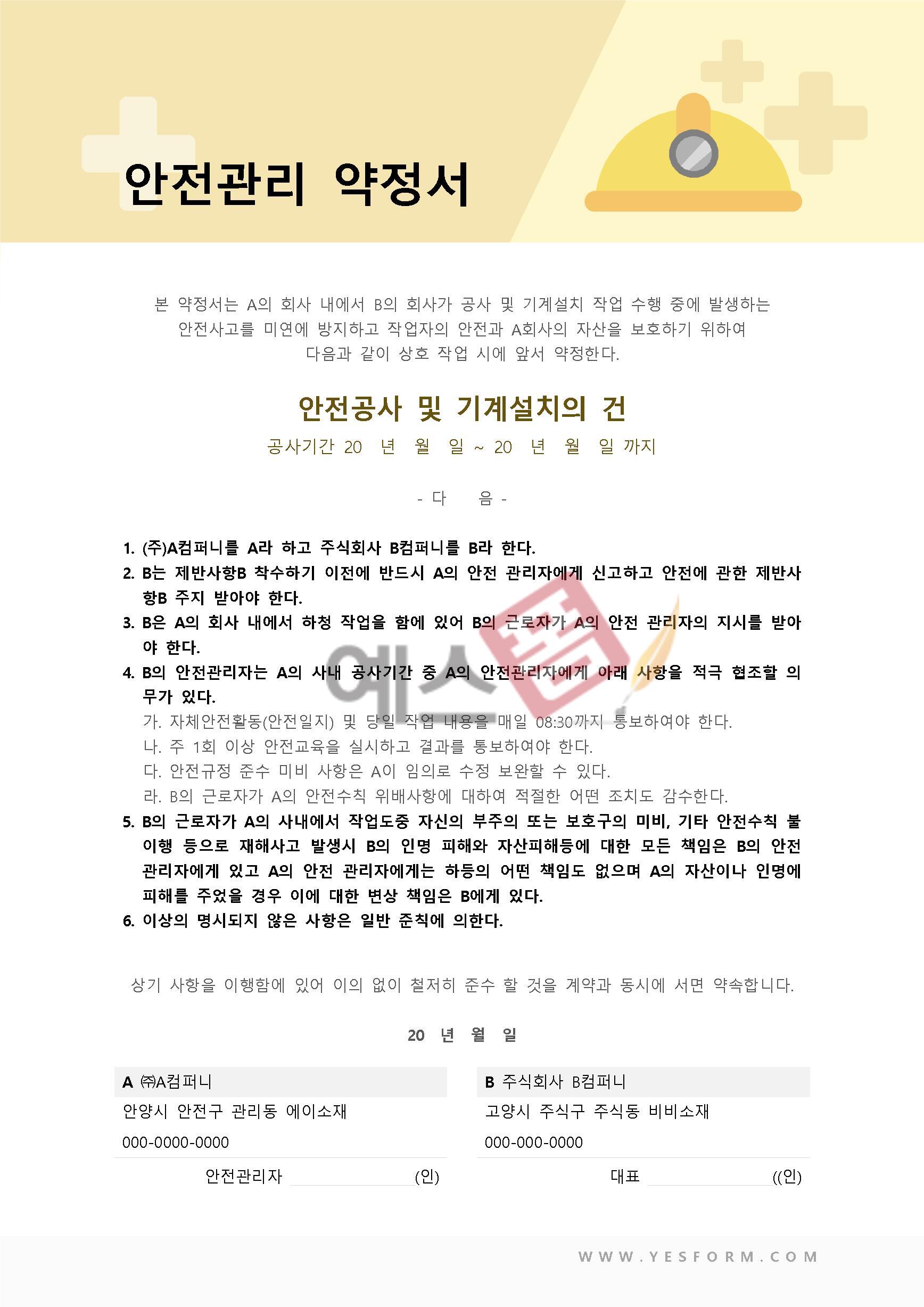 안전교육 실시현황 보고서 | 안전관리 약정서 |