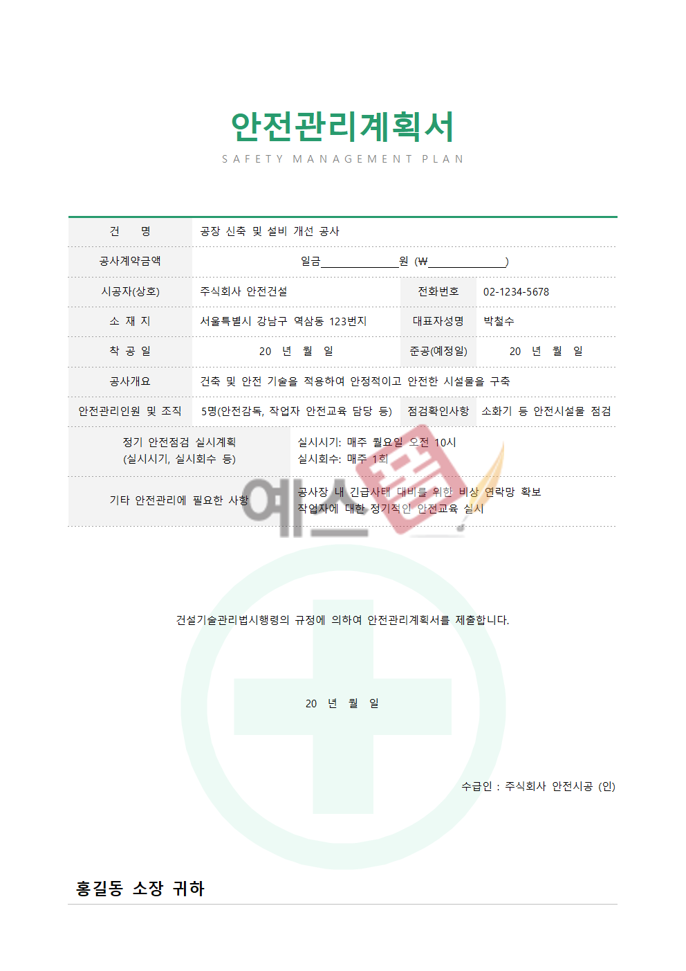 안전관리계획서 양식 모음