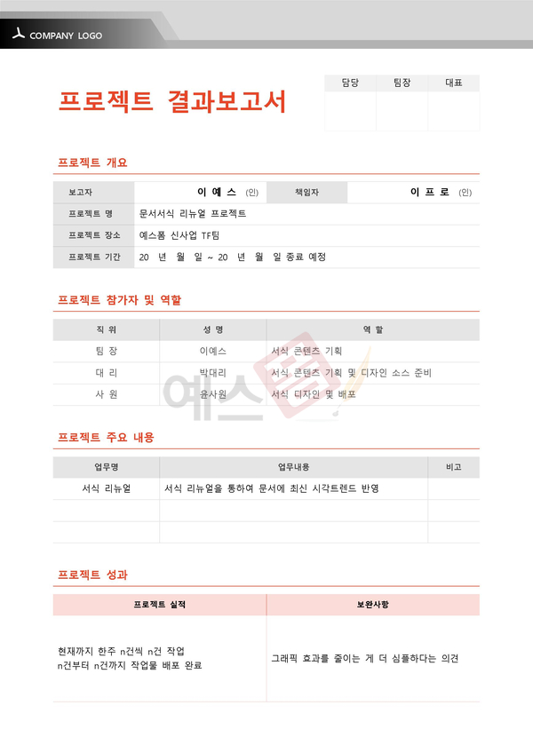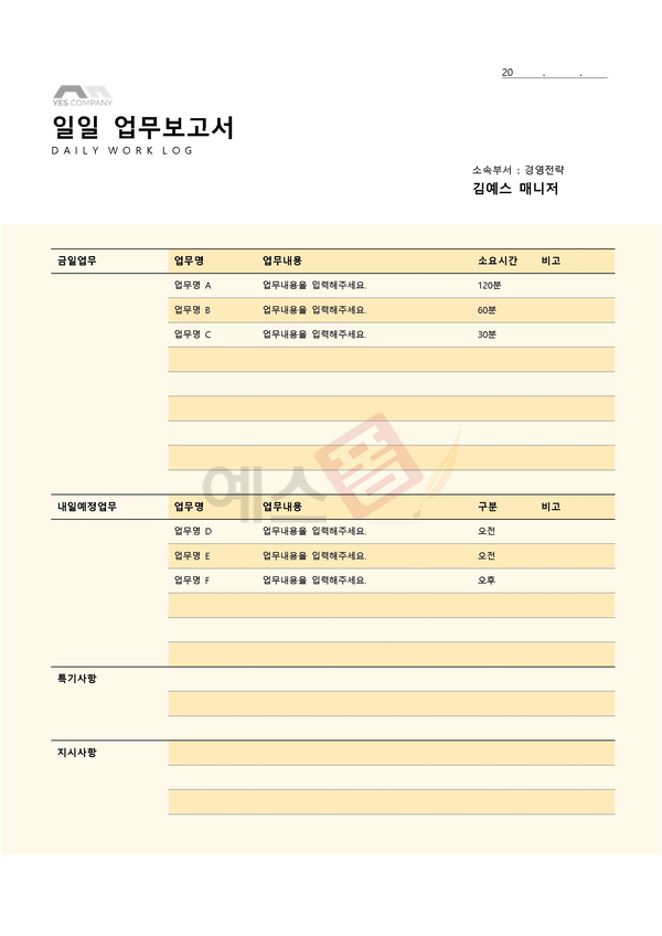 회사에서 사용하고 있는 표준화된 규격의 서식이 있다면 그것을 활용하면 되지만, 그렇지 않은 경우에는 보고서 작성을 어떻게 시작해야 할지 막막하실 텐데요. 예스폼에는 보고서 작성에 어려움을 겪는 분들을 위해 다양한 종류의 보고서 양식을 서비스하고 있습니다. 아래 양식들을 참고하셔서 직장 상사에게 칭찬받는 보고서를 작성해보시기 바랍니다.