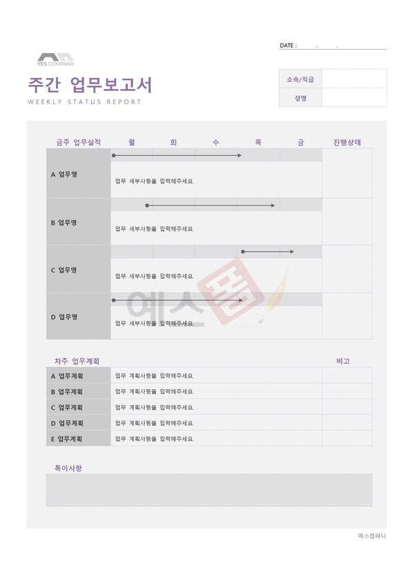 | 일일 업무보고서 | 주간 업무보고서 | 분기별 업무보고서 | 구매품의서 |