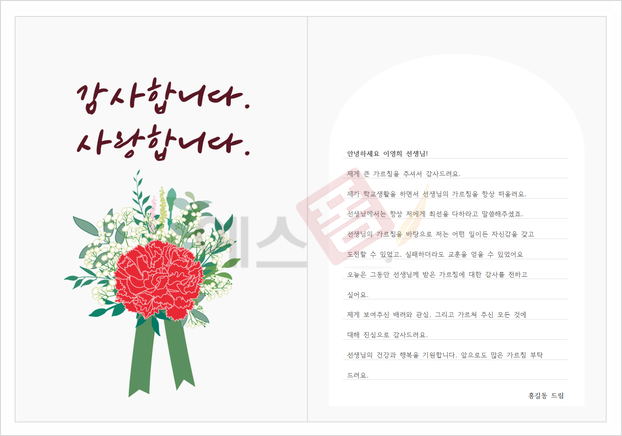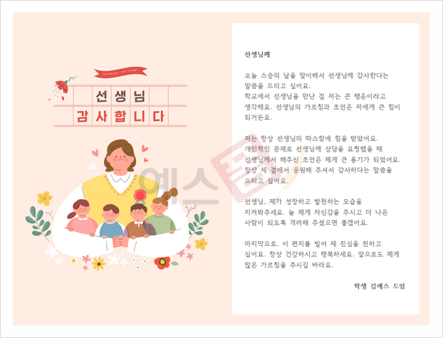 오늘은 예스폼에서 가정의 달을 맞이해 감사카드를 통해 따뜻한 마음을 전할 수 있기를 바라며 새롭게 업데이트한 스승의 날 감사편지 양식, 어버이날 감사편지 양식을 소개드릴 예정이며 사용하기 좋은 스승의 날 문구, 어버이날 문구를 함께 추천드리겠습니다.