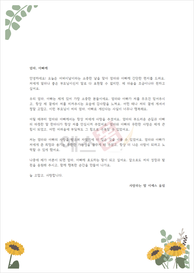 👇 예스폼 가정의 달 감사 편지 양식 보러 가기 👇