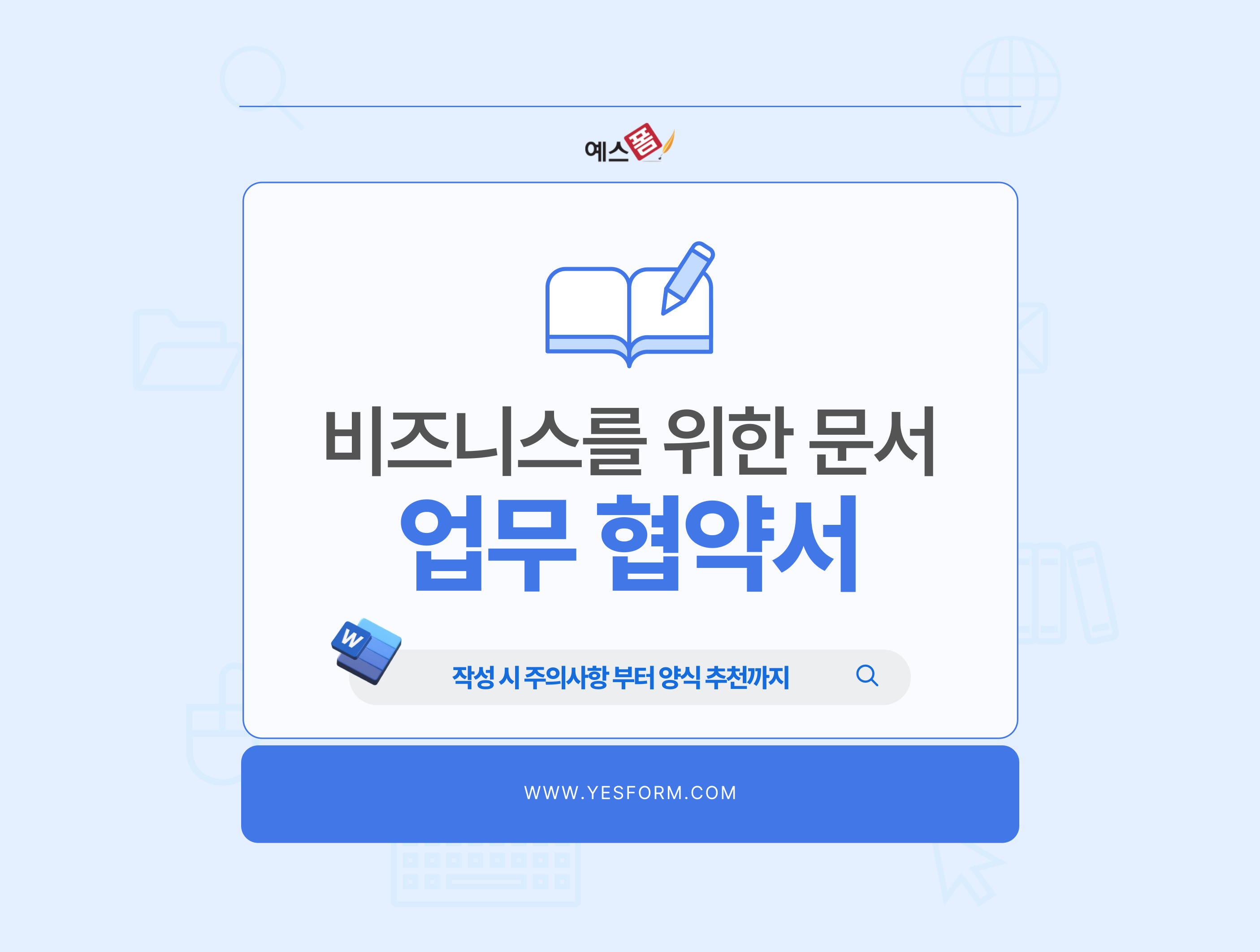 오늘은 예스폼에서 업무협약서 양식 및 예시 추천, 작성 시 유의사항에 대해서 알아보도록 하겠습니다.