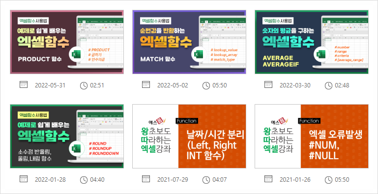 엑셀을 사용하다 보면 단순 데이터 입력, 조건부 서식 적용, 표 만들기 뿐만 아니라 다양한 함수들을 사용하는 경우가 발생하는데요. 실생활에서 사용되는 VLOOKUP함수, AVERAGEIF 등의 함수를 쉽게 배울 수 있는 엑셀 함수 강의입니다.