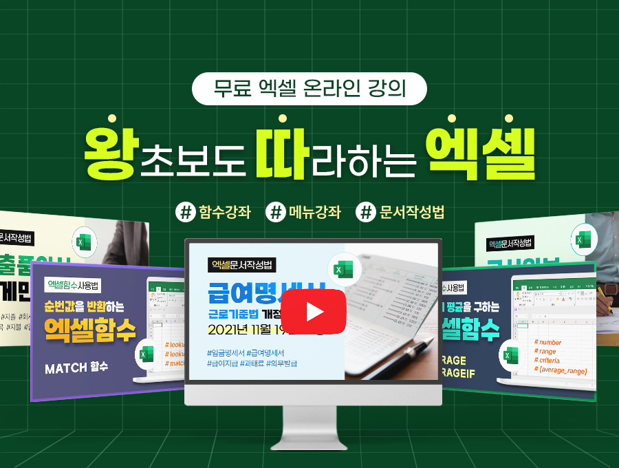 엑셀 기초 메뉴 강좌부터 문서작성법, 함수 활용까지 엑셀을 사용하시는 모든 분들이