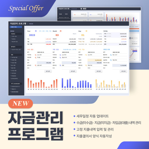 NEW 자금관리 프로그램(현금/계좌/체크/신용카드, 미수금/미지급/대출/상환, 자금일보&결산보고/