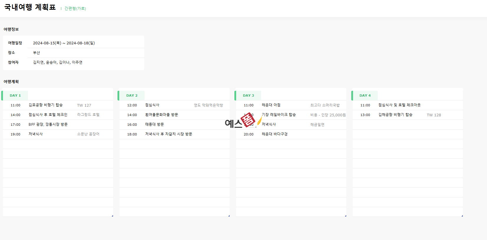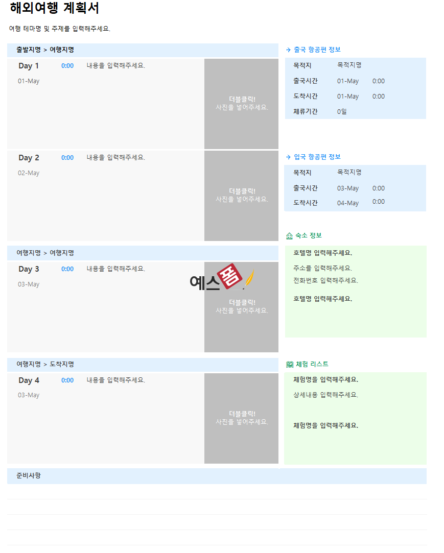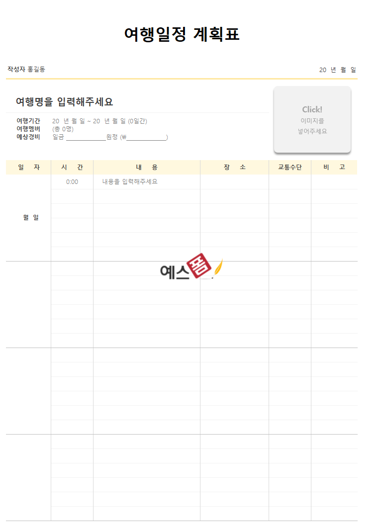 👇🏻 [예스폼 여행계획표 모음전 바로가기] 👇🏻