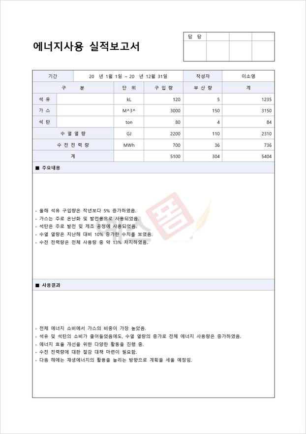 에너지사용 실적 보고서 (연료별 구분) |