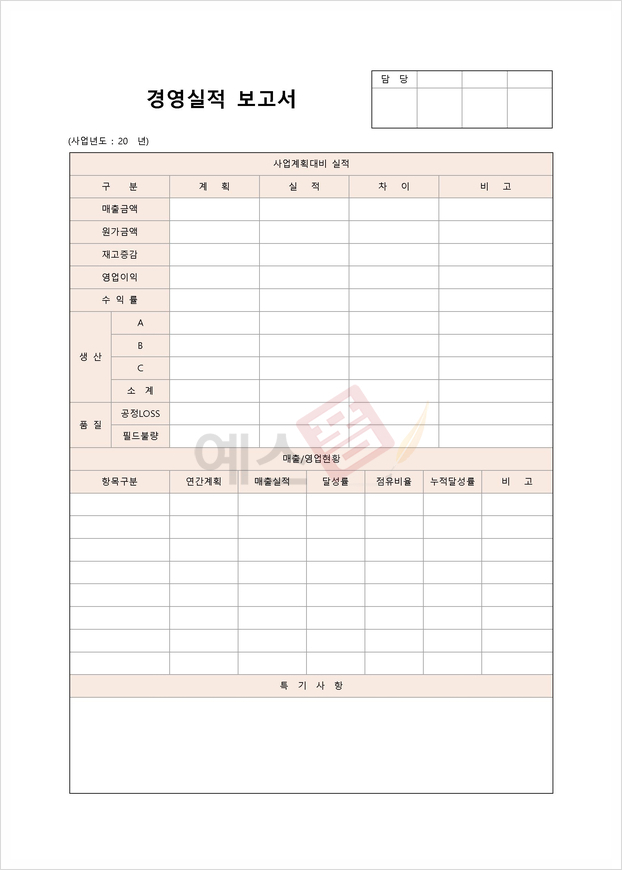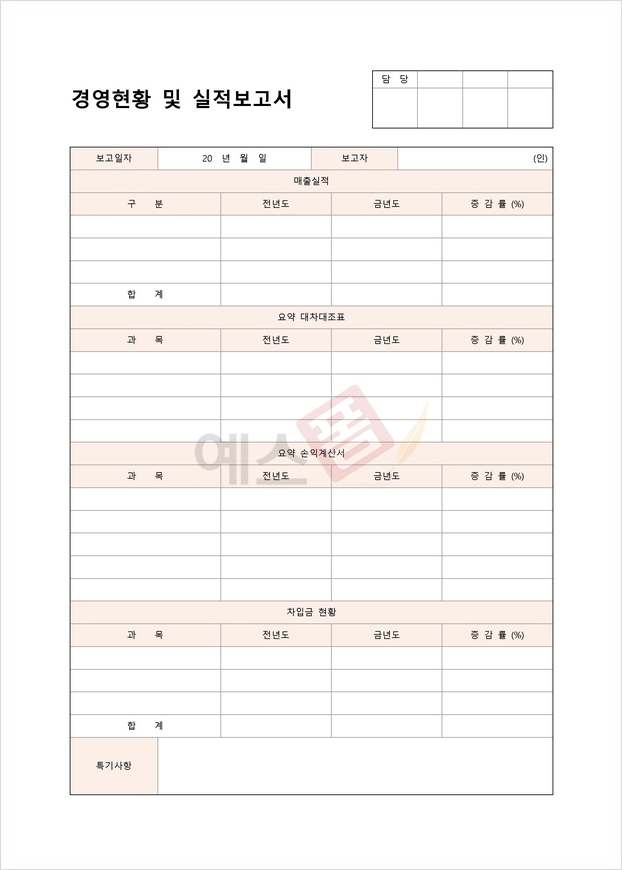 예스폼 실적 보고서 양식