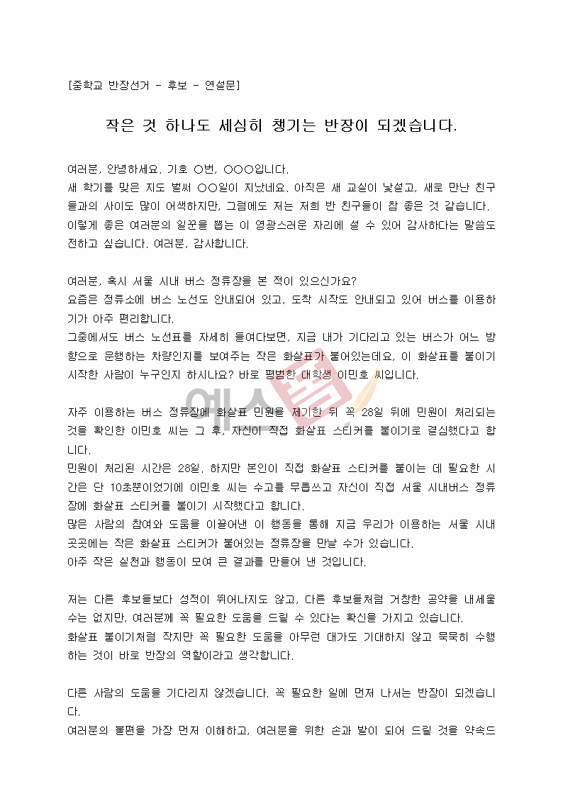 연설문 쓰는법부터 모음집까지 보고가세요!(반장, 전교회장, 선거후보자)