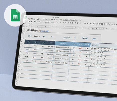 그래서 예스폼에서는 연차/휴가관리 담당자분들을 위해 연차/휴가 관리대장을 구글 스프레드시트 양식으로 새롭게 업데이트했습니다! 엑셀 오피스가 없어도, 구글 계정만 있으면 온라인에서 언제 어디서나 자유롭게 연차/휴가관리를 하실 수 있습니다.