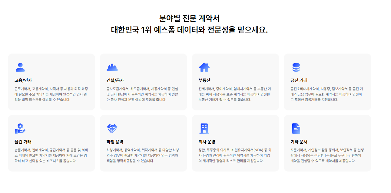 📁 분야별로 다양하게 제공되는 계약서 : 예스폼싸인 프리미엄 계약서 50종+