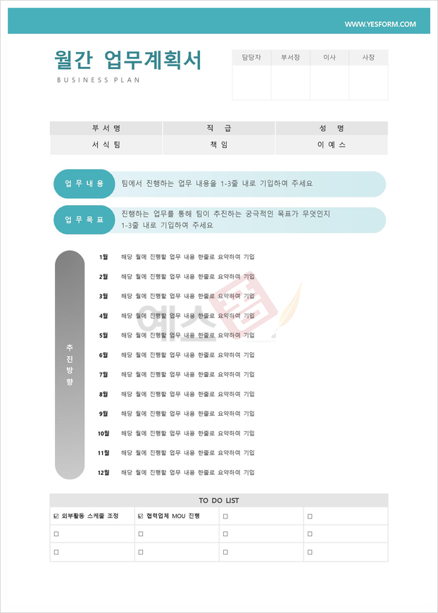 | 월간 업무계획서 | 월간 업무계획서 (월 목표입력) |