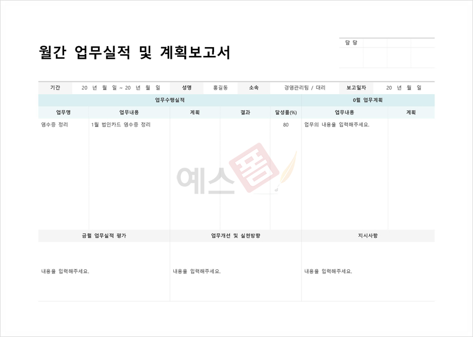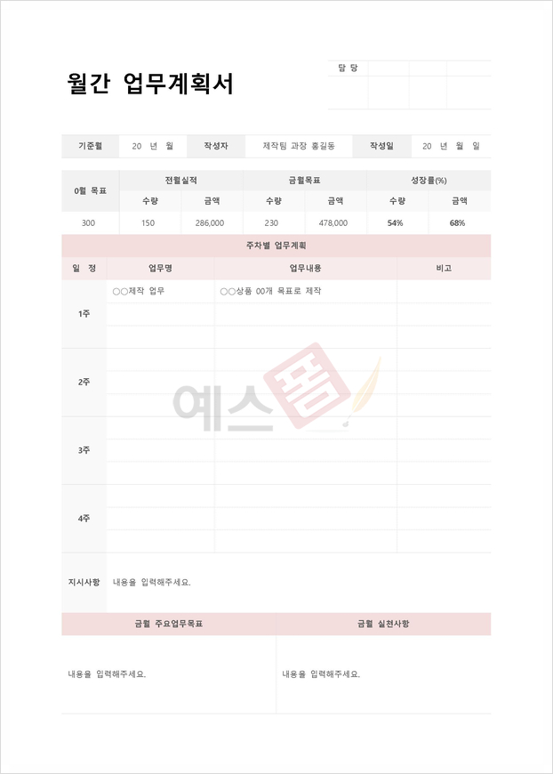 | 월간 업무계획서 | 월간 업무계획서 (월 목표입력) |