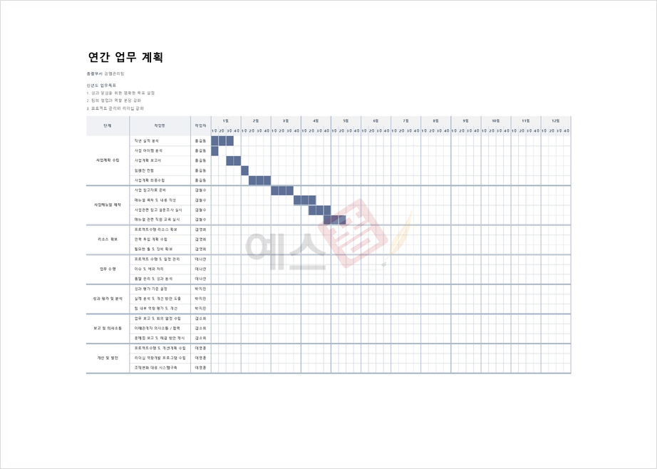 | 연간 업무 계획 | 월간 업무 계획 | 주간 업무 차트 |