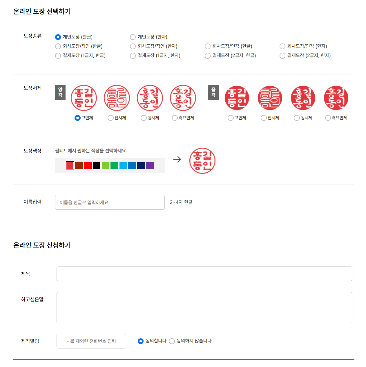 * 온라인 도장은 실물 도장이 아니라 도장 이미지를 의미합니다.