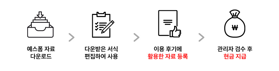 예스폼에서 다운로드 받은 자료를 목적에 맞게 사용한 후 이용 후기에 등록하시면 현금으로 지급해 드리는 서비스입니다.