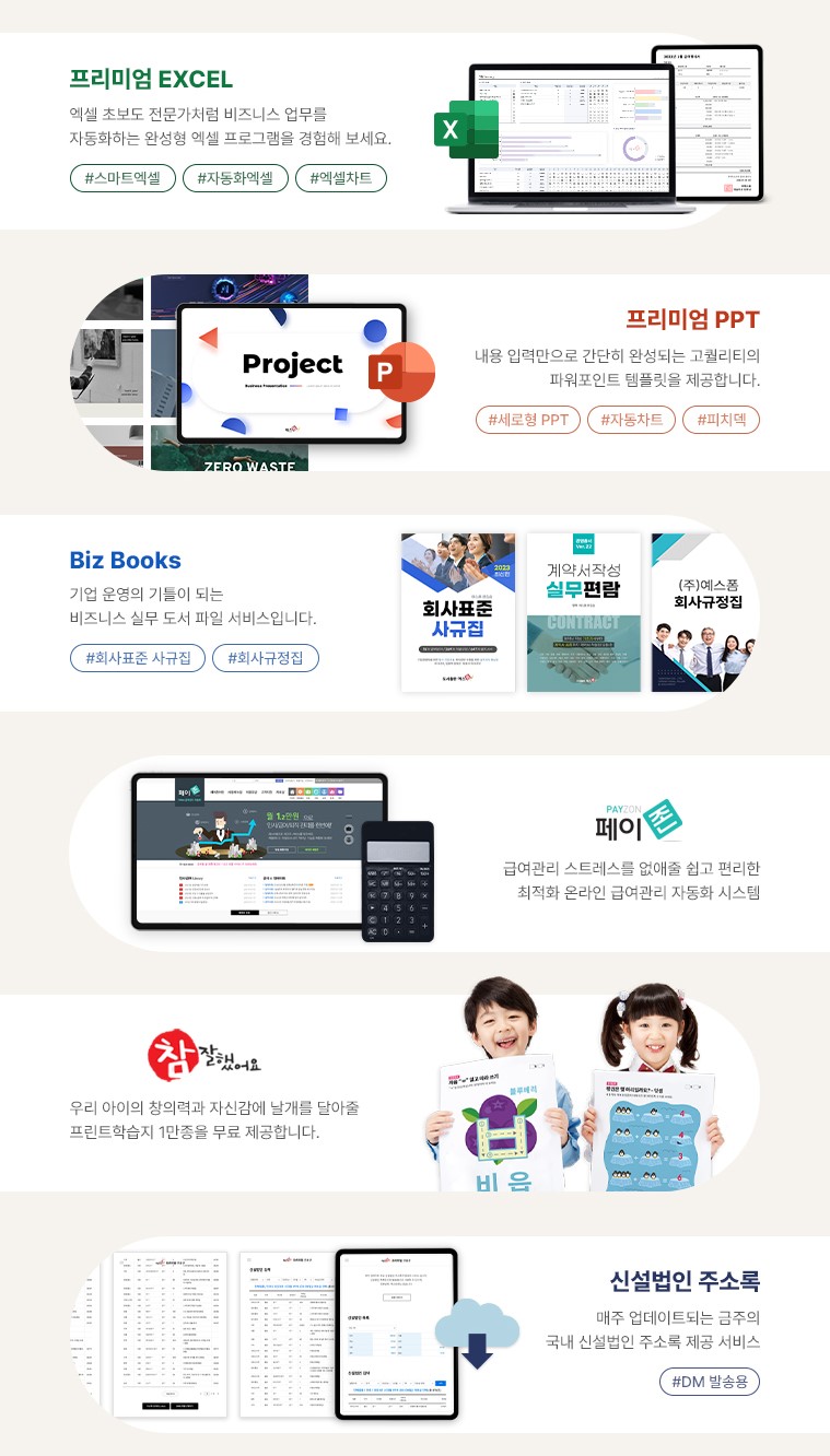 무료 쇼핑존, 온라인 도장, 신설법인 주소록, 엄마표 프린트학습지까지